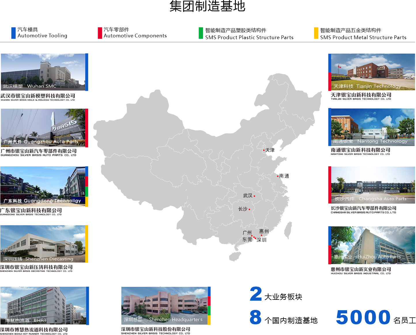 深圳市銀寶山新科技股份有限公司(簡稱銀寶山新,股票代碼:002768),是一家大型精密模具為核心,集工業設計、汽車零部件、智能制造服務為一體的全球化一站式制造服務供應商。我們擁有行業領先的戰略布局,在中國沿海主要城市設有8個制造基地,在全球五大洲17個國家設有技術工廠以及服務據點。我們踐行精益求精的工匠精神,倡導緊密合作的兄弟文化,歷經二十多年模具行業積淀,擁有350多名十年以上經驗的工匠能手,擁有438項以上的專利,先后榮獲20多項目=國家級精模獎。